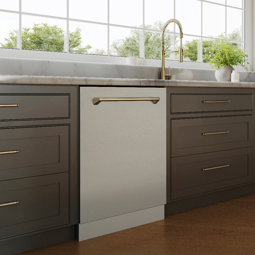 The Autograph Edition Dishwashers combine remarkable cleaning performance with a luxurious style, designed to effortlessly keep your dishes looking spotless. ZLINE dishwashers are available with a spacious third rack as well as easy-to-use top touch controls. The dishwasher comes in 18” and 24” models.