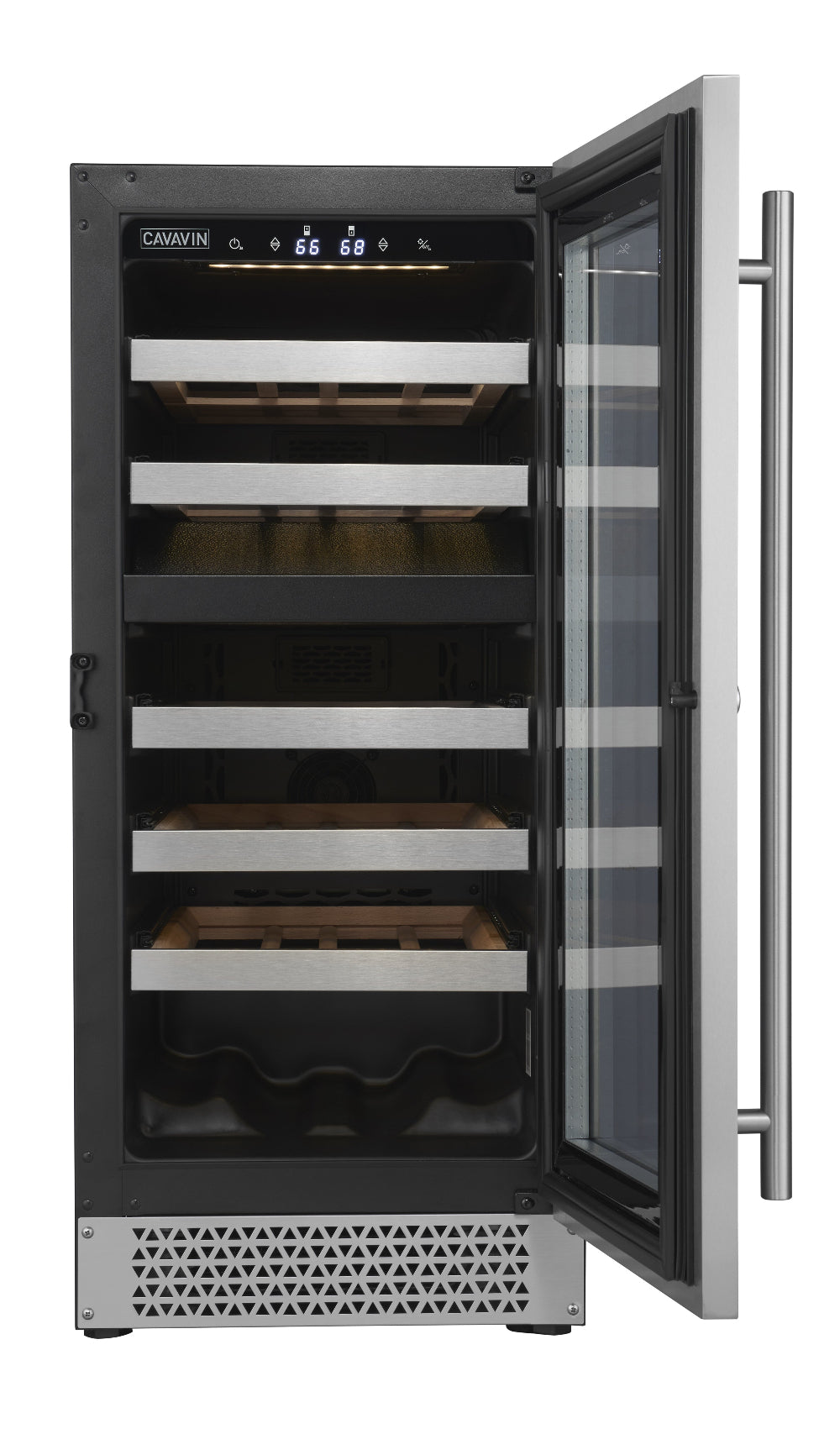 This elegant wine cellar, capable of holding up to 24 750 ml bottles, combines functionality and aesthetics with its built-in or freestanding option. Its reversible anti-UV glass door, framed in seamless stainless steel, underlines a high-quality design. It offers thermal management with 2 programmable temperature zones, varying from 5°C to 12°C in the upper part and from 10°C to 20°C in the lower part, ideal for storing wine. Integrated LED touch controls and low-emission lighting provide comfortable operation and a refined ambiance.