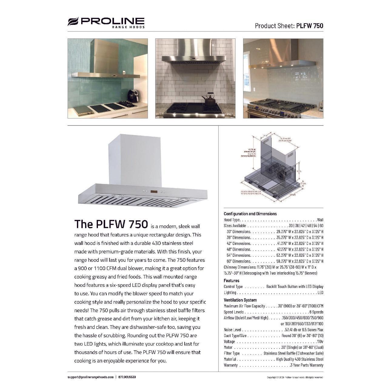 One of the most requested sizes for one of our more popular range hoods, the PLFW 750, now also comes in the 30" and 36" wide sizes. It has all of the bells and whistles that the other sizes bring, like the 900 CFM blower, the 6-speed touch panel, the easy-to-clean baffle filter, as well as the 15-minute shut-off timer. It is one of the strongest and most efficient range hoods of that size. The design is made to be slick and incredibly modern, not calling attention to itself, and yet it does its job better than any range hood in the industry.