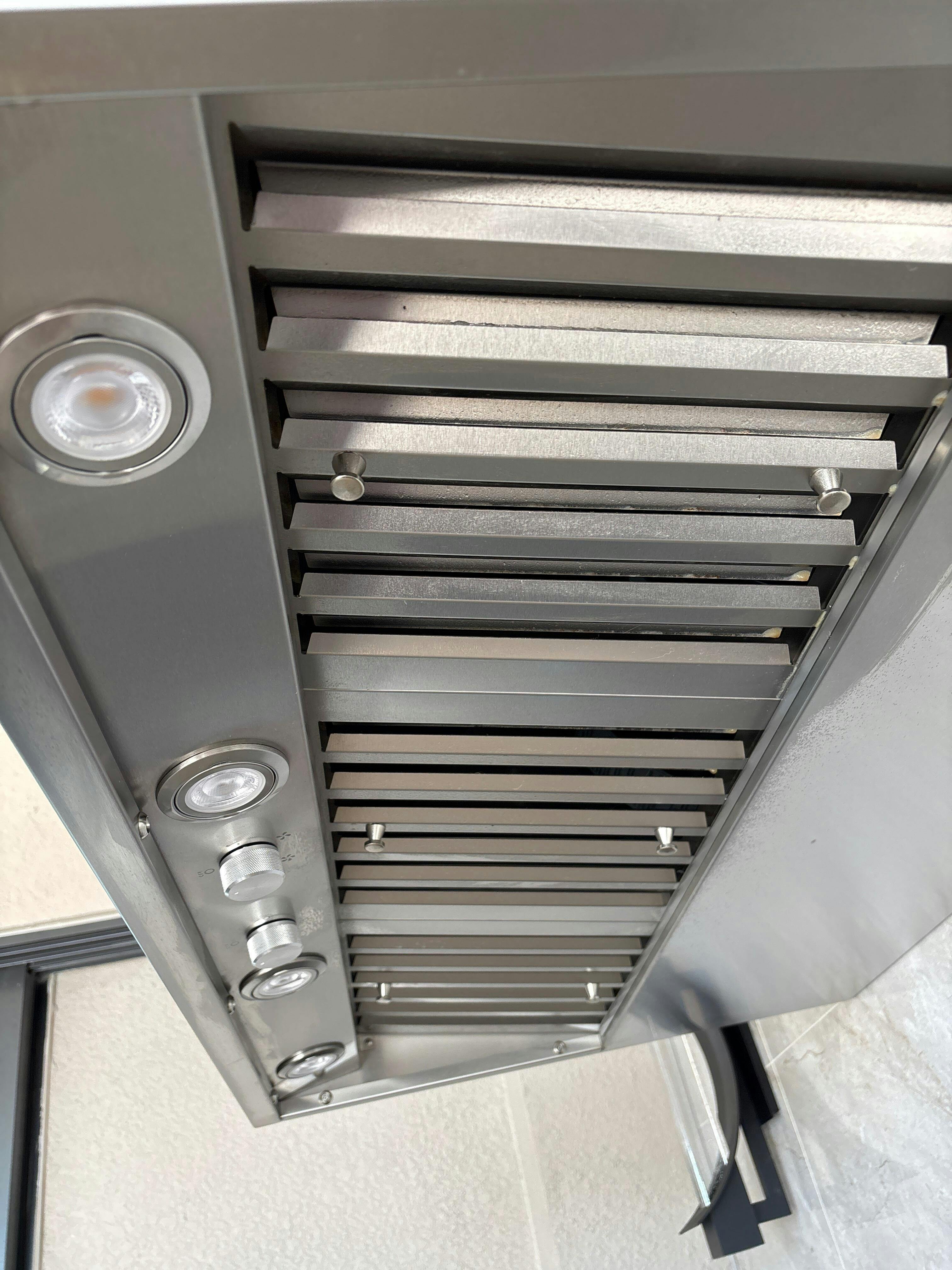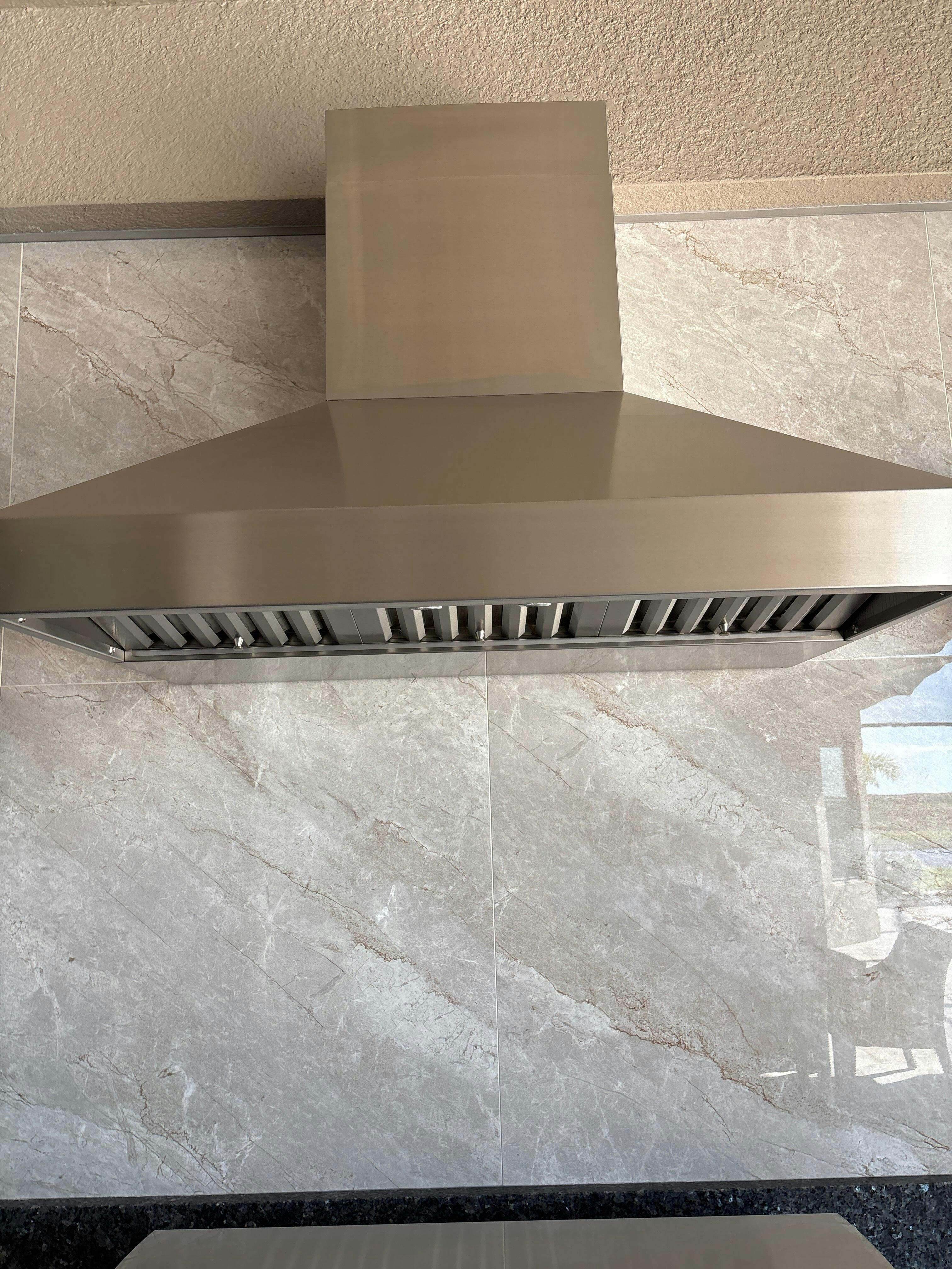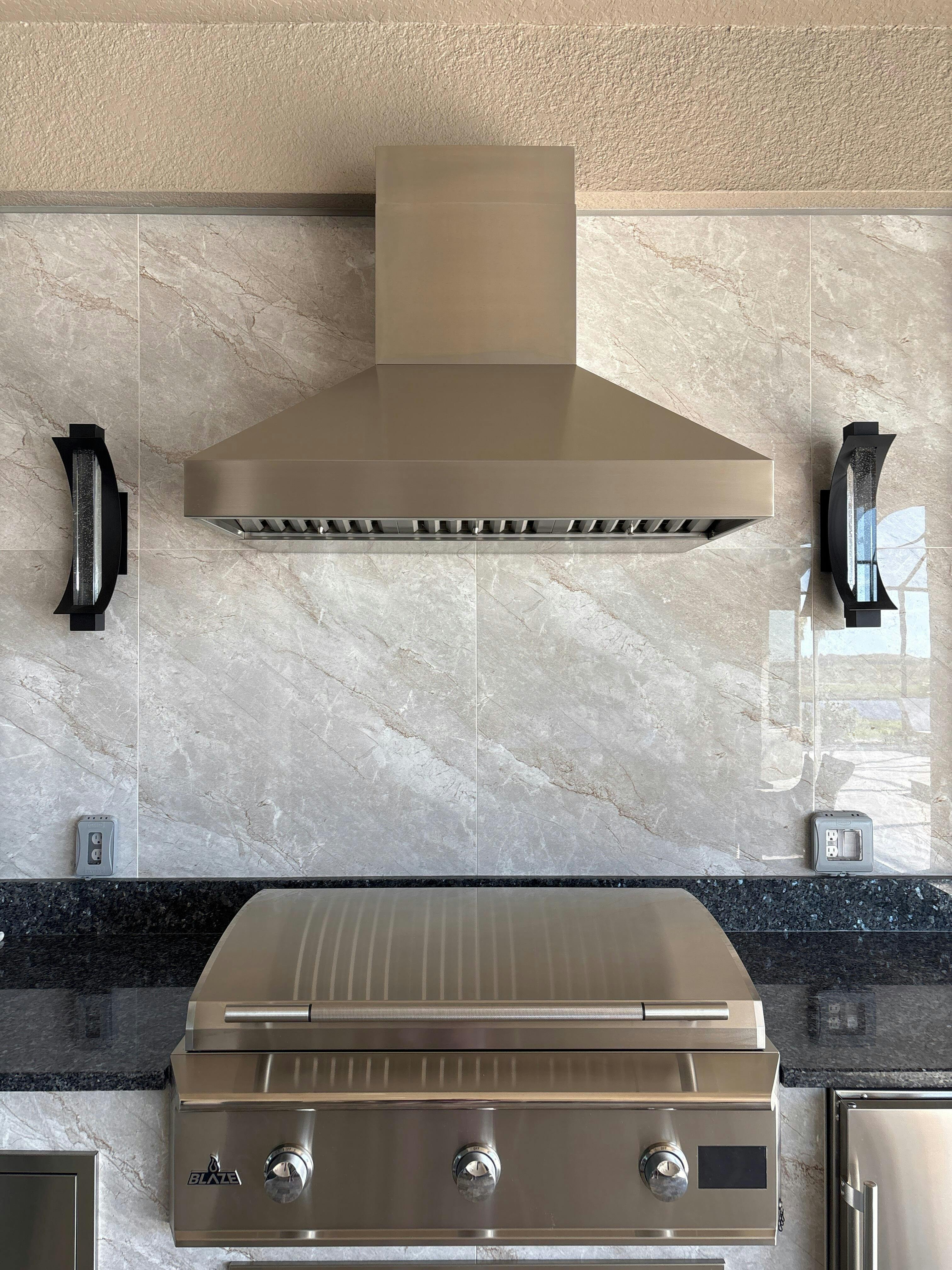 Introducing our robust and reliable BBQ Range Hood, the Victory Twister-BBQ. Specifically designed for BBQs and crafted to enhance your outdoor cooking experience with unmatched ventilation performance, it is designed to withstand the rigors of grilling and barbecuing. Equipped with a powerful 1200 CFM blower and designed with the filters brought further forward to avoid wasted suction over the BBQ lid, this range hood efficiently removes smoke, grease, and cooking odors. The mechanical switches allow easy control over your ventilation and the warm, dimmable LED lights, while the dishwasher-safe stainless steel filters make this range hood easy to clean.