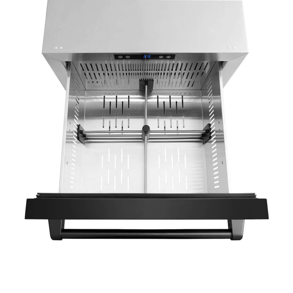 - LED Illumination - Illuminate the expansive interior of both drawers with 2 full-length cool white lights that can be set to display for up to 6 hours with or without drawers open