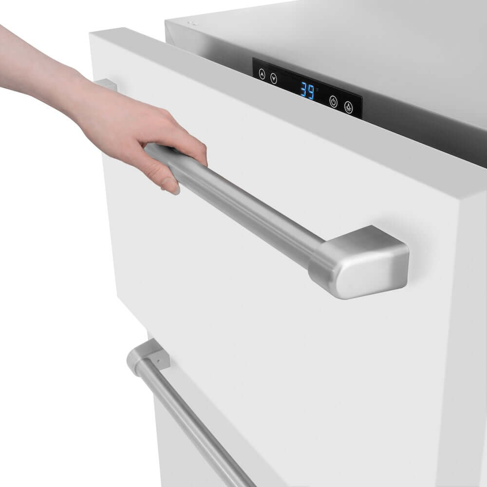 Luxury isn’t meant to be desired - it’s meant to be attainable. The ZLINE 24 in. Touchstone 168 Can Outdoor-Rated Dual Refrigerator Drawer with White Matte Doors (RDSO-WM-24) features state-of-the-art cooling technology, dual smooth glide soft-closing drawers, and an expansive interior capable of holding multiple beverages. Designed with a fully wrapped, anti-sweat stainless steel exterior and durable white matte doors perfect for indoor or outdoor installation, ZLINE Touchstone Refrigerator Drawers are masterfully crafted to let you host parties of any size for any occasion.
