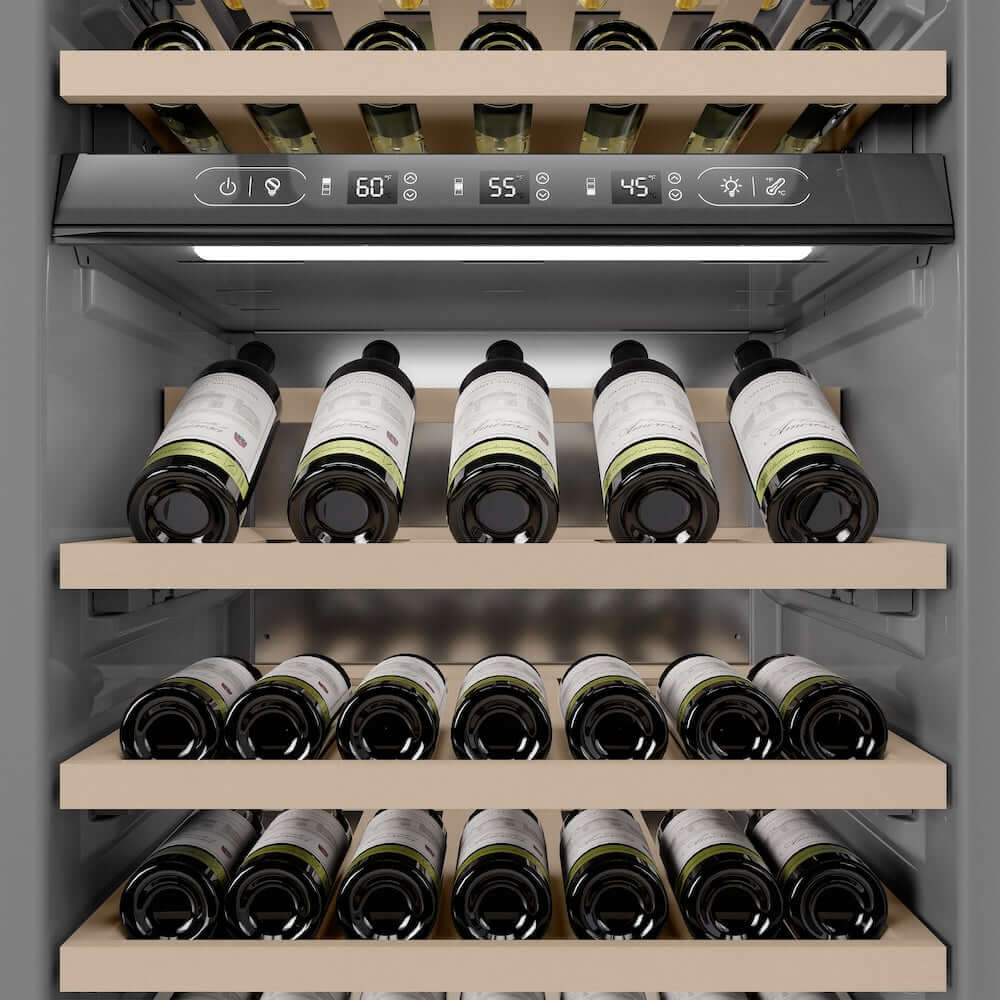 - Triple Zone Temperature Control - Conveniently store various varietals and bubbles at ideal temperature levels within 3 separate zones that each offer a vast range between 41°F and 68°F
