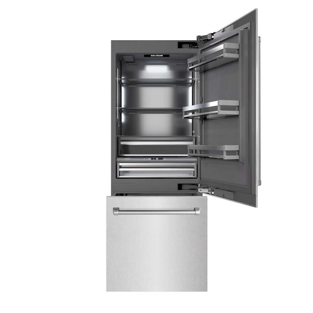 Luxury isn’t meant to be left desired—it’s meant to be attainable. The ZLINE 30 in. 16.1 cu. ft. Built-In Bottom Freezer Refrigerator with Water Dispenser and Ice Maker in Satin Stainless Steel with Graphite Gray Interior (GRBIV-SN-30) provides the ultimate upgrade to the center of your home by pairing premium dual cooling technology with enhanced storage capacity for multiple grocery items. Achieve ZLINE Attainable Luxury® excellence with innovative features designed to enhance your kitchen’s cooling and freezing capability.