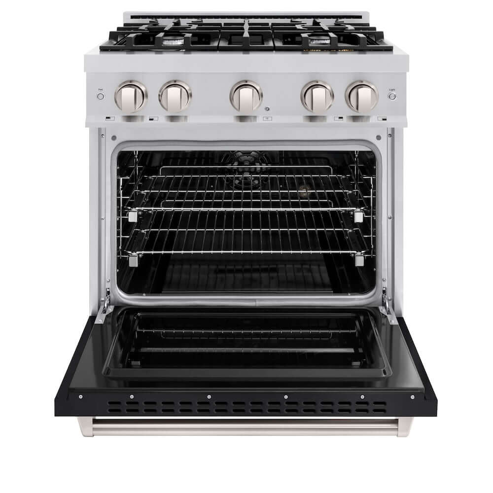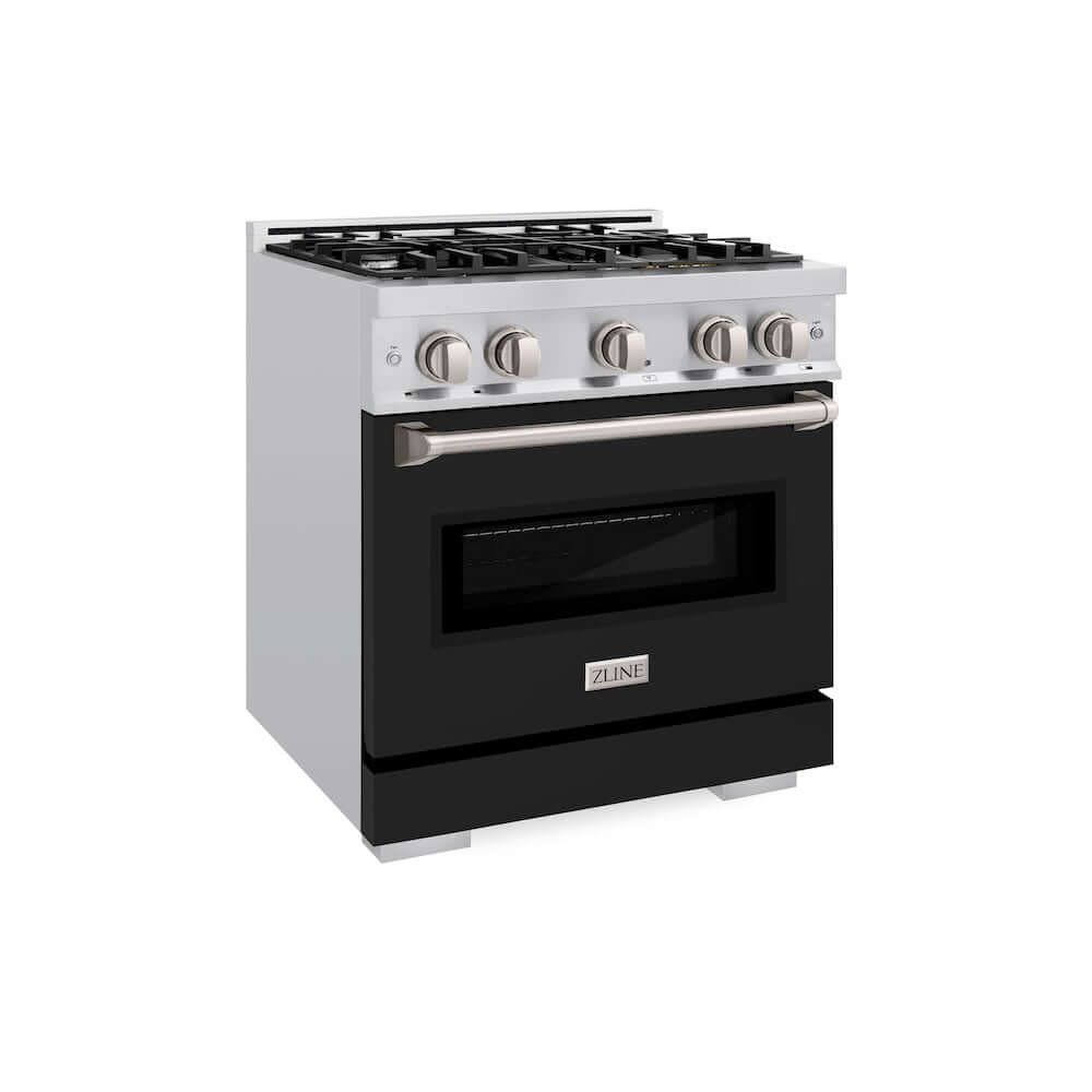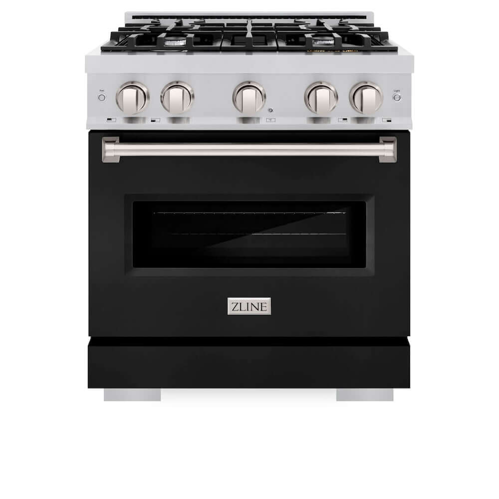 ZLINE 30 in. 4.2 cu. ft. Classic Dual Fuel Range with 4 Burner Gas Cooktop and Electric Convection Oven in Stainless Steel with Black Matte Door (CDR-BLM-30)