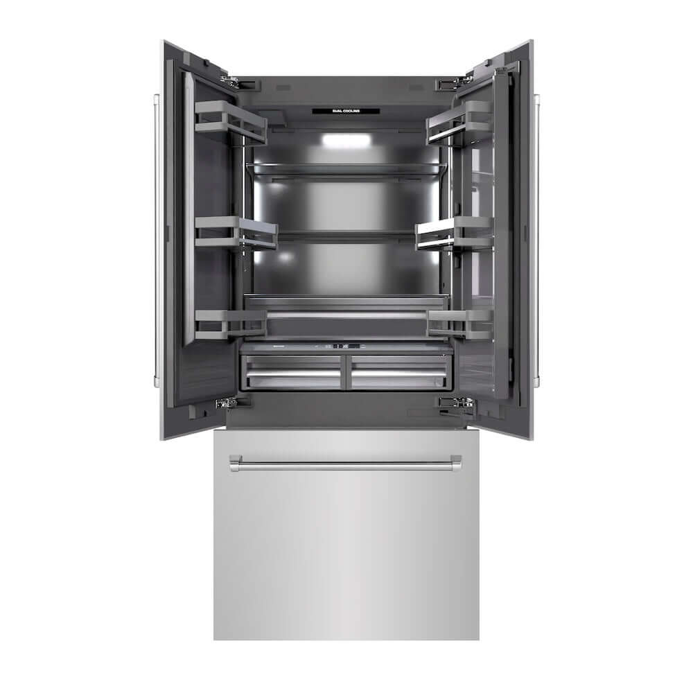 Luxury isn’t meant to be desired - it’s meant to be attainable. The ZLINE 36 in. 19.6 cu. ft. French Door Built-In Bottom Freezer Refrigerator with Water Dispenser and Ice Maker in Stainless Steel with Graphite Gray Interior (GRBIV-304-36) provides the ultimate upgrade to the center of your home by pairing premium dual cooling technology with enhanced storage capacity for multiple grocery items. Achieve ZLINE Attainable Luxury® excellence with innovative features designed to enhance your kitchen’s cooling and freezing capability.