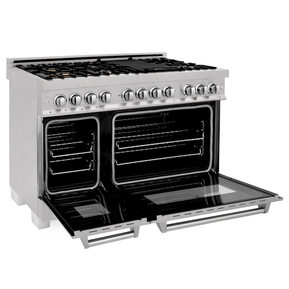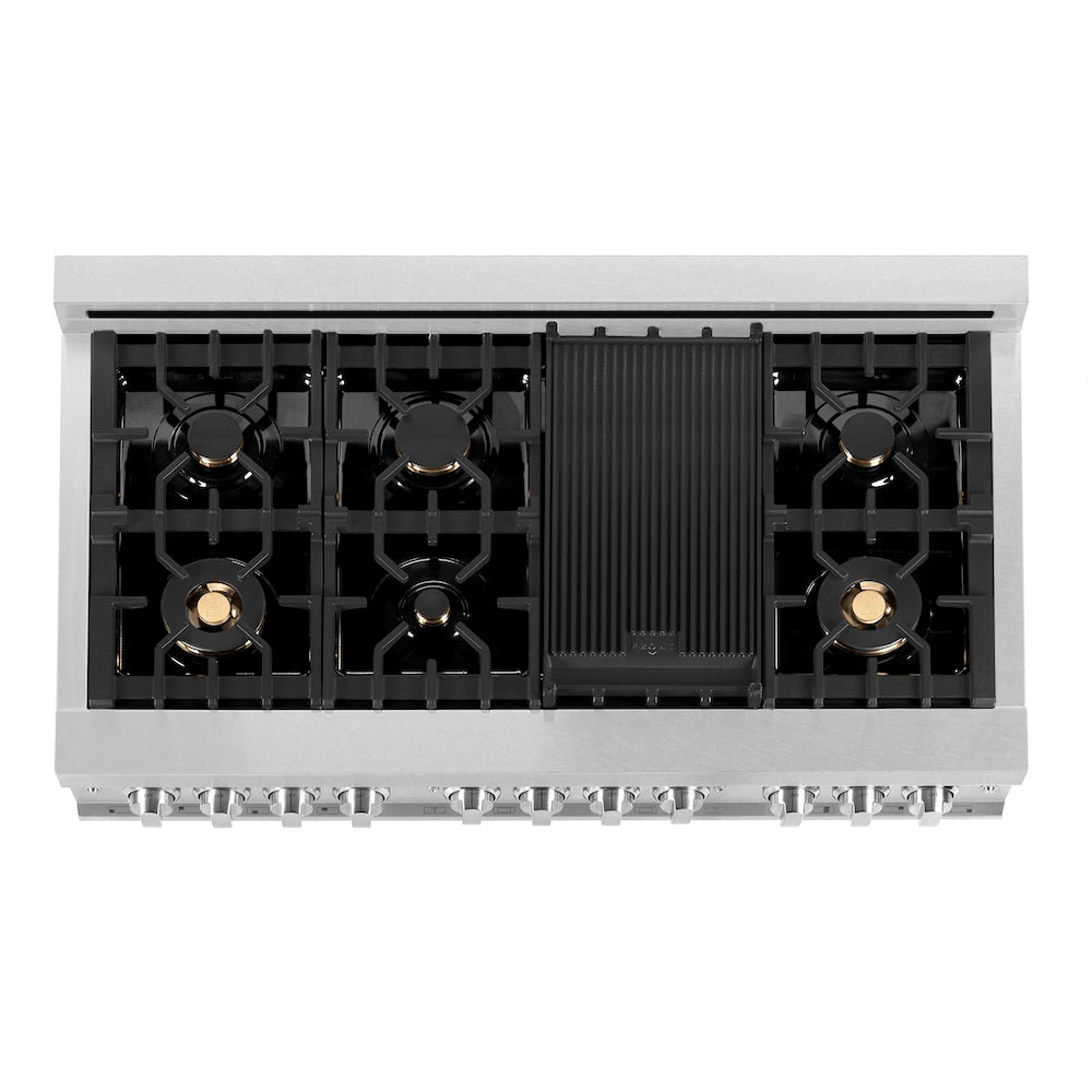 Luxury isn’t meant to be left desired—it’s meant to be attainable. The ZLINE 48 in. 6.0 cu. ft. Legacy Dual Fuel Range with Gas Cooktop and 2 Electric Ovens in Satin Stainless Steel with 6 Brass Burners (RAS-SN-BR-48) pairs a powerful gas cooktop with 6 Italian-crafted brass burners with a large electric convection oven, and a small bake and broil oven with Landscape oven door window designs. With innovative features designed to enhance your kitchen’s capability, ZLINE Legacy Dual Fuel Ranges provide a professional culinary experience by pairing unmatched performance with timeless style.