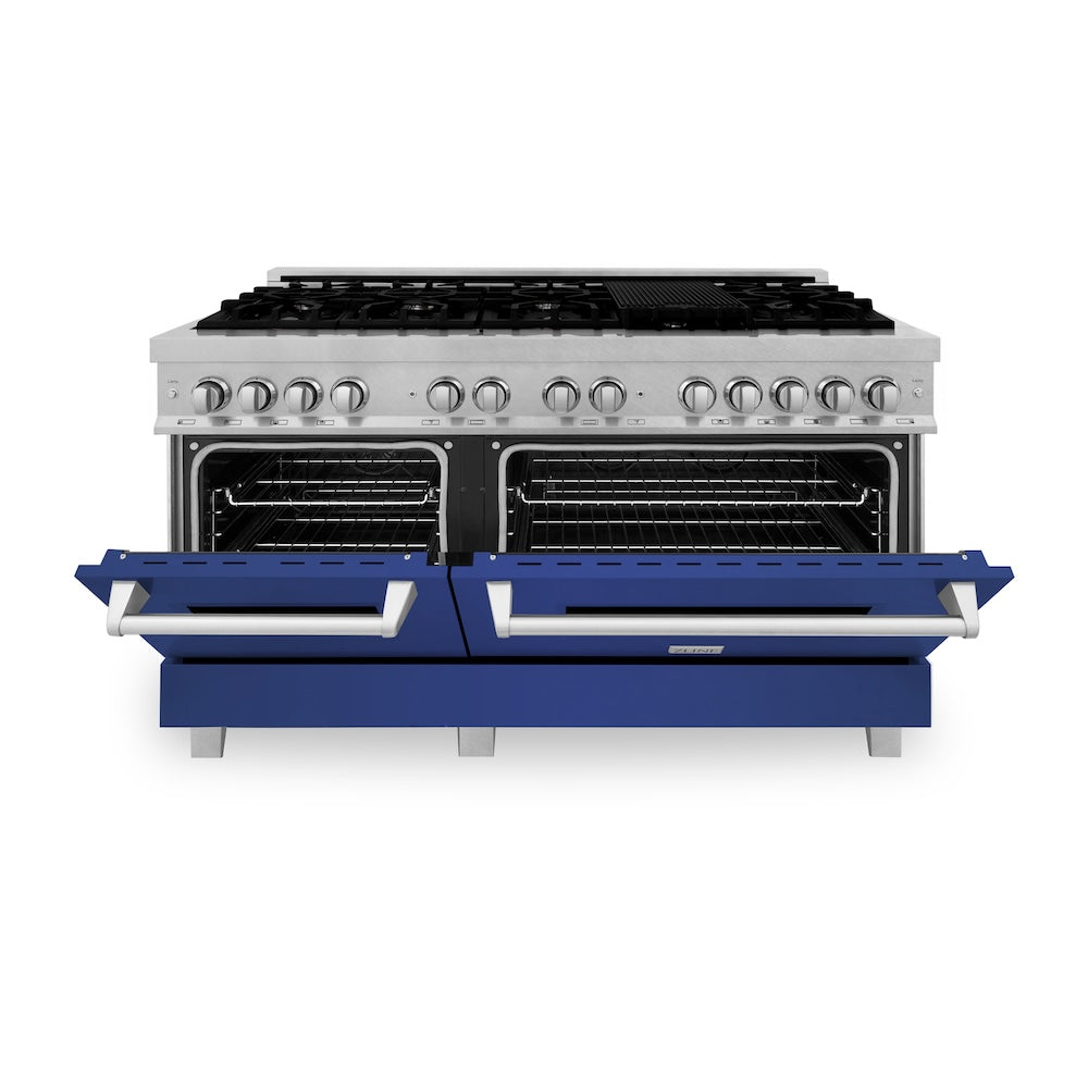 - Custom Door Finish - Outfit your ZLINE Legacy Dual Fuel Range with 2 beautiful Blue Matte oven doors