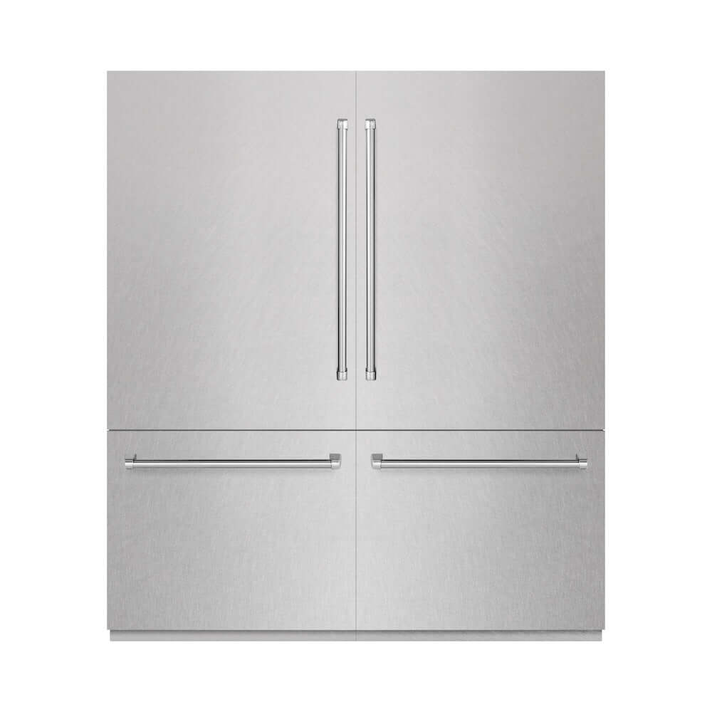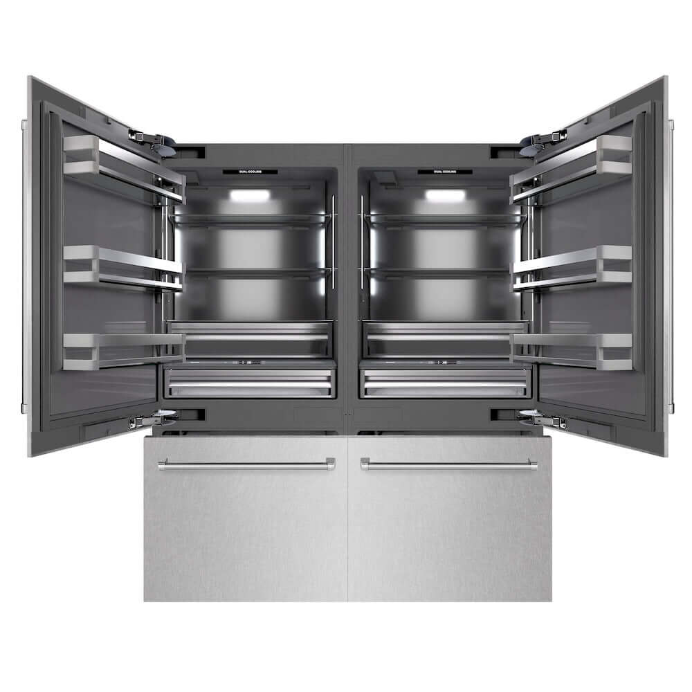 Luxury isn’t meant to be left desired—it’s meant to be attainable. The ZLINE 72 in. 39.6 cu. ft. French Door Built-In Bottom Freezer Refrigerator with Water Dispensers and Ice Makers in Satin Stainless Steel with Graphite Gray Interior (GRBIT-SN-72) provides the ultimate upgrade to the center of your home by pairing premium dual cooling technology with enhanced storage capacity for multiple grocery items. Achieve ZLINE Attainable Luxury® excellence with innovative features designed to enhance your kitchen’s cooling and freezing capability.