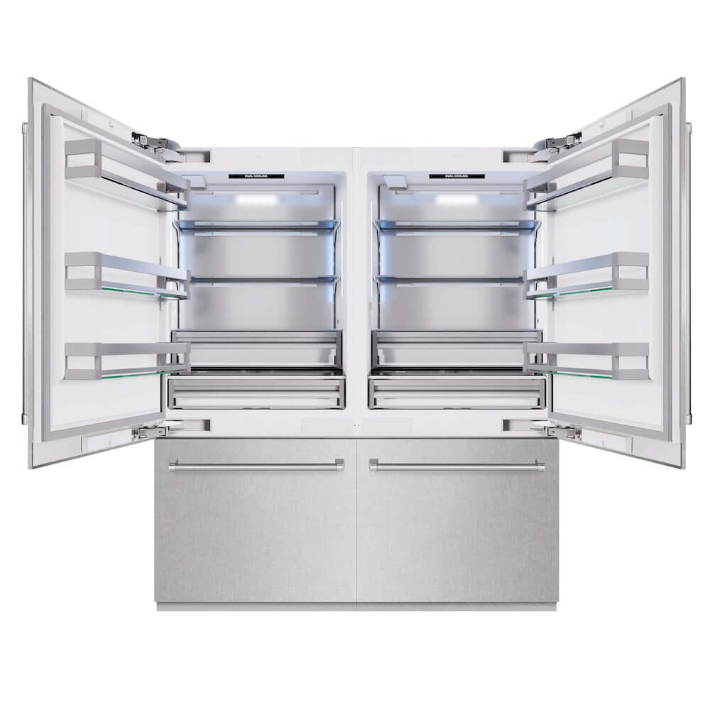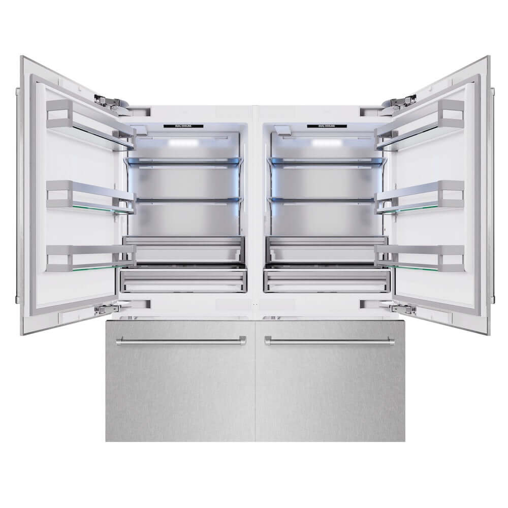 Luxury isn’t meant to be left desired—it’s meant to be attainable. The ZLINE 72 in. 39.6 cu. ft. French Door Built-In Bottom Freezer Refrigerator with Water Dispensers and Ice Makers in Satin Stainless Steel (RBIT-SN-72) provides the ultimate upgrade to the center of your home by pairing premium dual cooling technology with enhanced storage capacity for multiple grocery items. Achieve ZLINE Attainable Luxury® excellence with innovative features designed to enhance your kitchen’s cooling and freezing capability.