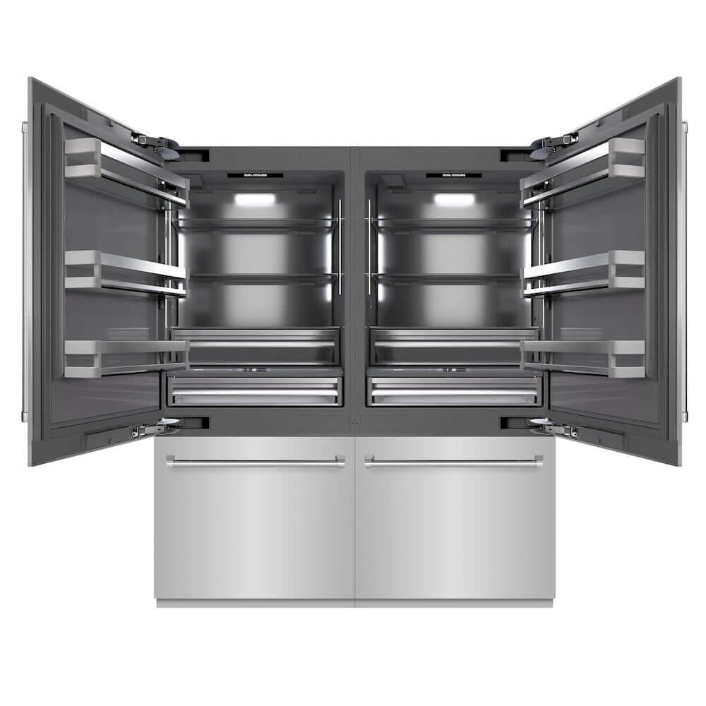 Luxury isn’t meant to be desired - it’s meant to be attainable. The ZLINE 72 in. 39.6 cu. ft. French Door Built-In Bottom Freezer Refrigerator with Water Dispensers and Ice Makers in Stainless Steel with Graphite Gray Interior (GRBIT-304-72) provides the ultimate upgrade to the center of your home by pairing premium dual cooling technology with enhanced storage capacity for multiple grocery items. Achieve ZLINE Attainable Luxury® excellence with innovative features designed to enhance your kitchen’s cooling and freezing capability.