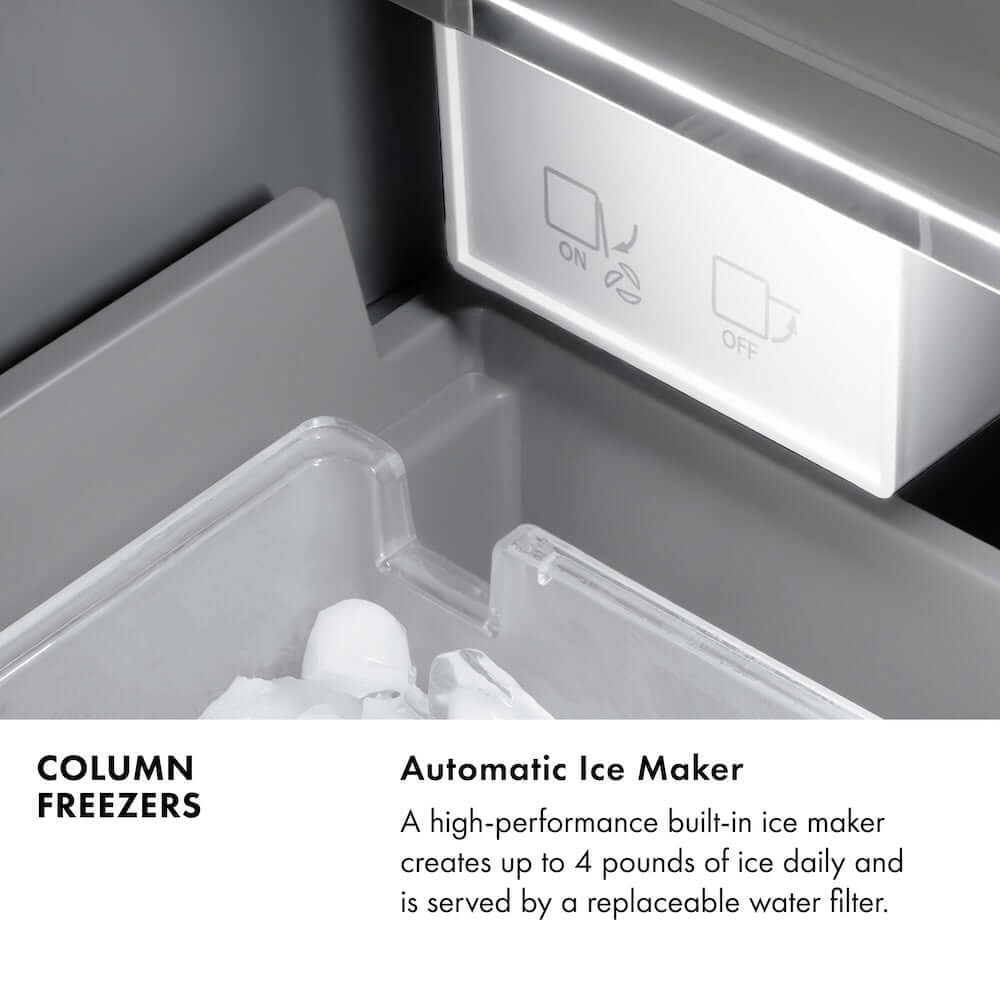 - Automatic Ice Maker - A built-in ice maker creates up to 4 pounds of ice daily and is served by a replaceable water filter