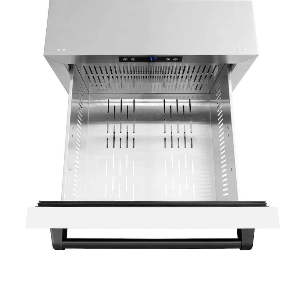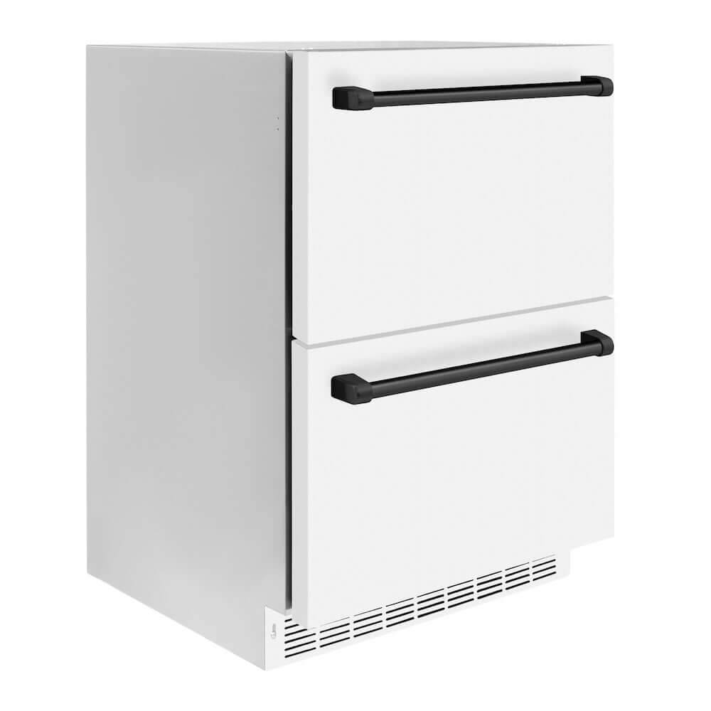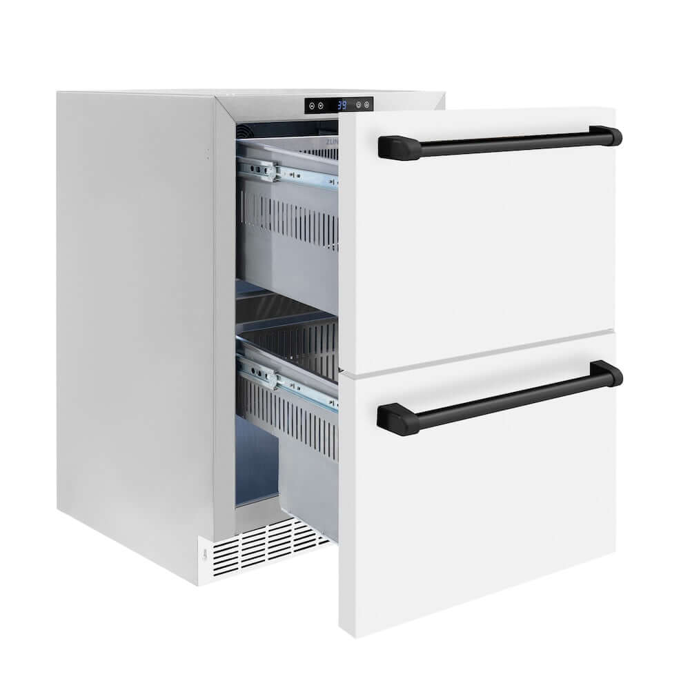 Luxury isn’t meant to be desired - it’s meant to be attainable. The ZLINE Autograph Edition 24 in. Touchstone 168 Can Outdoor-Rated Dual Refrigerator Drawer with White Matte Doors and Matte Black Handles (RDSOZ-WM-24-MB) features state-of-the-art cooling technology, dual smooth glide soft-closing drawers, and an expansive interior capable of holding multiple beverages. Designed with a fully wrapped, anti-sweat stainless steel exterior and durable white matte doors perfect for indoor or outdoor installation, ZLINE Autograph Edition Touchstone Refrigerator Drawers are masterfully crafted to let you host parties of any size for any occasion.