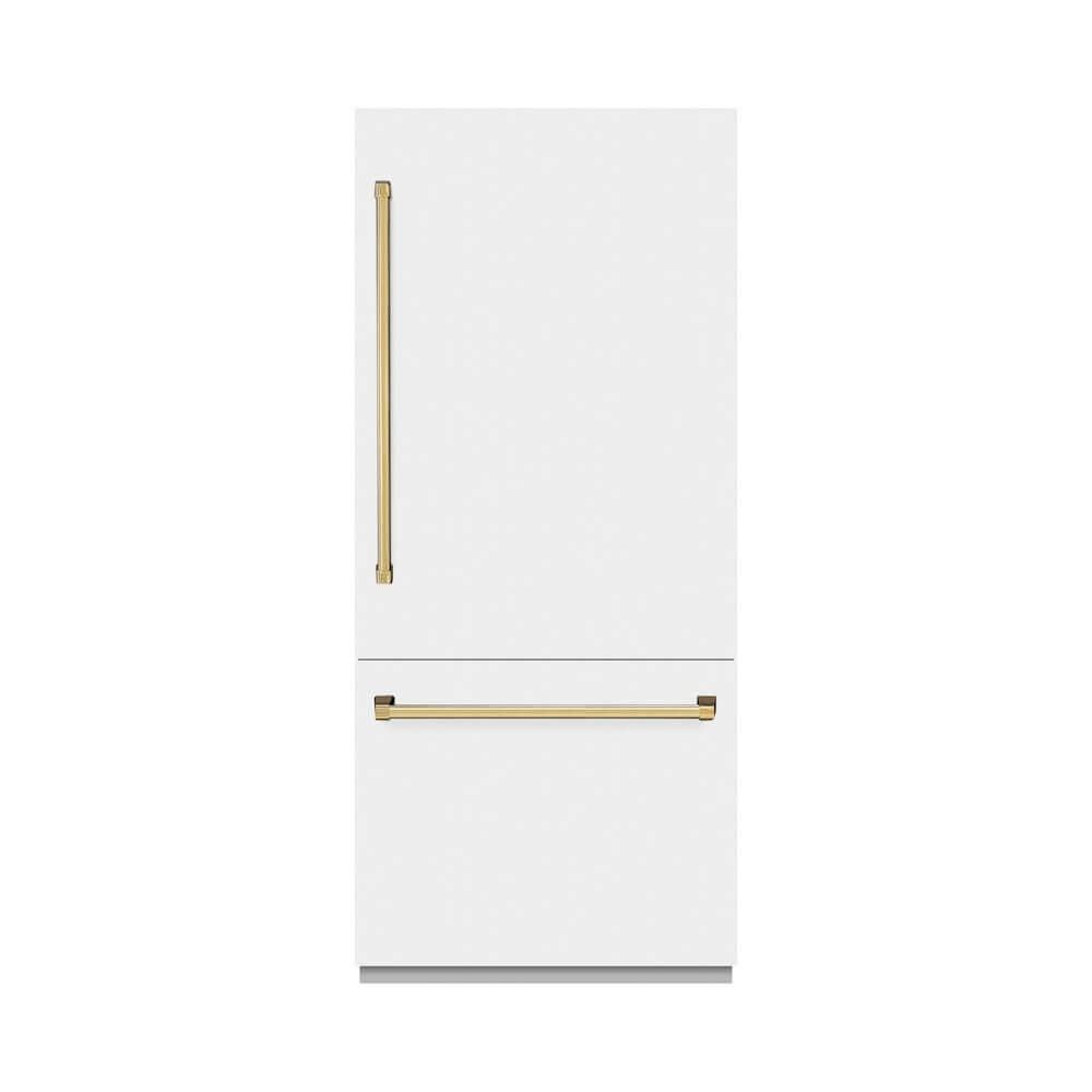 Luxury isn’t meant to be desired - it’s meant to be attainable. The ZLINE Autograph Edition 36 in. 19.8 cu. ft. Built-In Bottom Freezer Refrigerator with Water Dispenser and Ice Maker in White Matte with Graphite Gray Interior and Polished Gold Accents (GRBITZ-WM-36-G) provides the ultimate upgrade to the center of your home by pairing premium dual cooling technology with enhanced storage capacity for multiple grocery items. Achieve ZLINE Attainable Luxury® excellence with innovative features designed to enhance your kitchen’s cooling and freezing capability.
