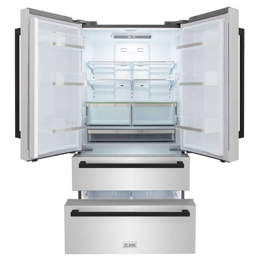 Luxury isn’t meant to be left desired—it’s meant to be attainable. The ZLINE Autograph Edition 36 in. 22.5 cu. ft. Counter-Depth French Door Refrigerator with Ice Maker in Fingerprint-Resistant Stainless Steel with Matte Black Modern Handles (RFMZ-36-FMB) delivers an elevated experience by pairing innovative dual cooling technology with a spacious counter-depth design and a high-capacity built-in ice maker. Achieve ZLINE Attainable Luxury® excellence with timeless features designed to enhance your kitchen’s capability.