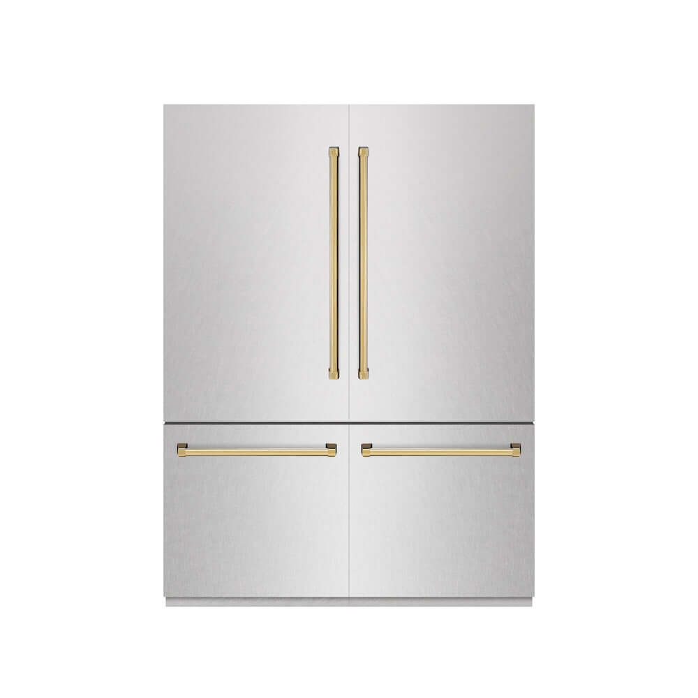 Luxury isn’t meant to be left desired—it’s meant to be attainable. The ZLINE Autograph Edition 60 in. 32.2 cu. ft. French Door Built-In Bottom Freezer Refrigerator with Water Dispenser and Ice Maker in Satin® Stainless Steel with Graphite Gray Interior and Polished Gold Accents (GRBIVZ-SN-60-G) provides the ultimate upgrade to the center of your home by pairing premium dual cooling technology with enhanced storage capacity for multiple grocery items. Achieve ZLINE Attainable Luxury® excellence with innovative features designed to enhance your kitchen’s cooling and freezing capability.