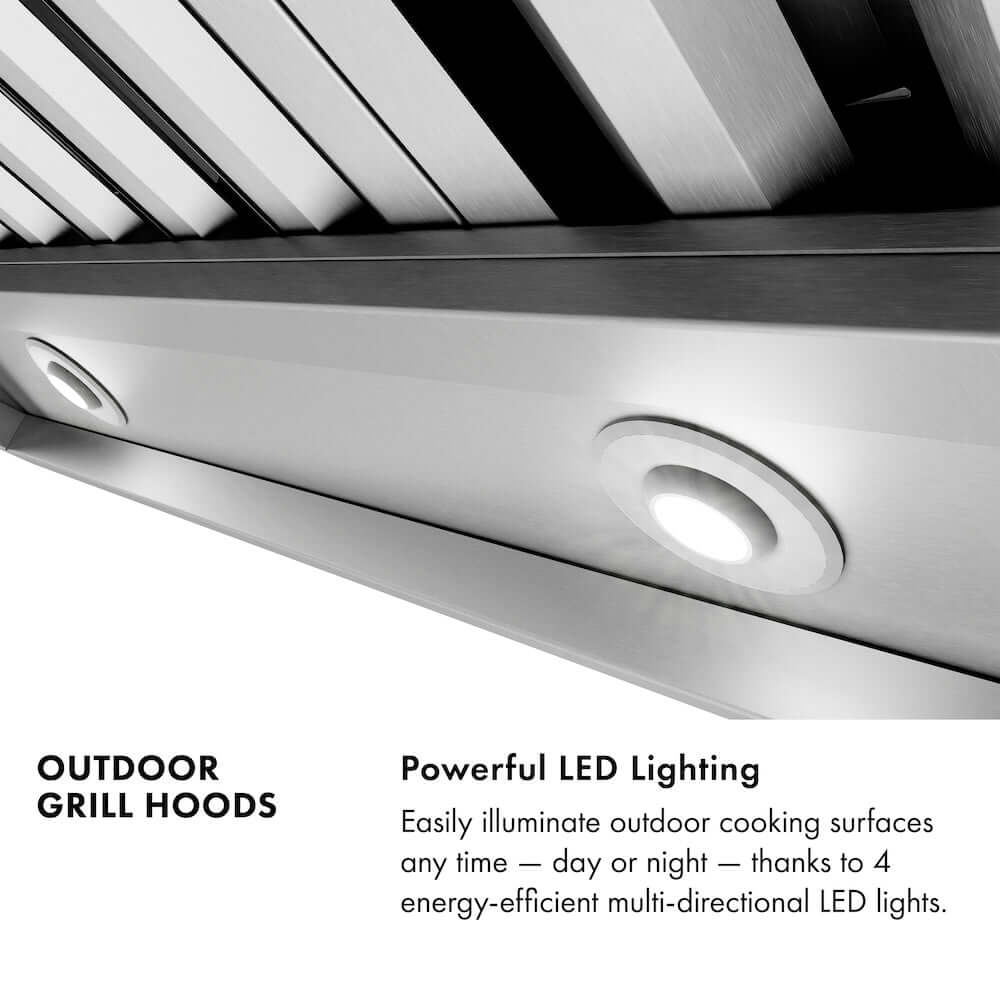 - Powerful LED Lighting - ZLINE Island Mount Outdoor Grill Hoods are equipped with 8 energy-efficient multi-directional LED lights to illuminate cooking surfaces any time day or night