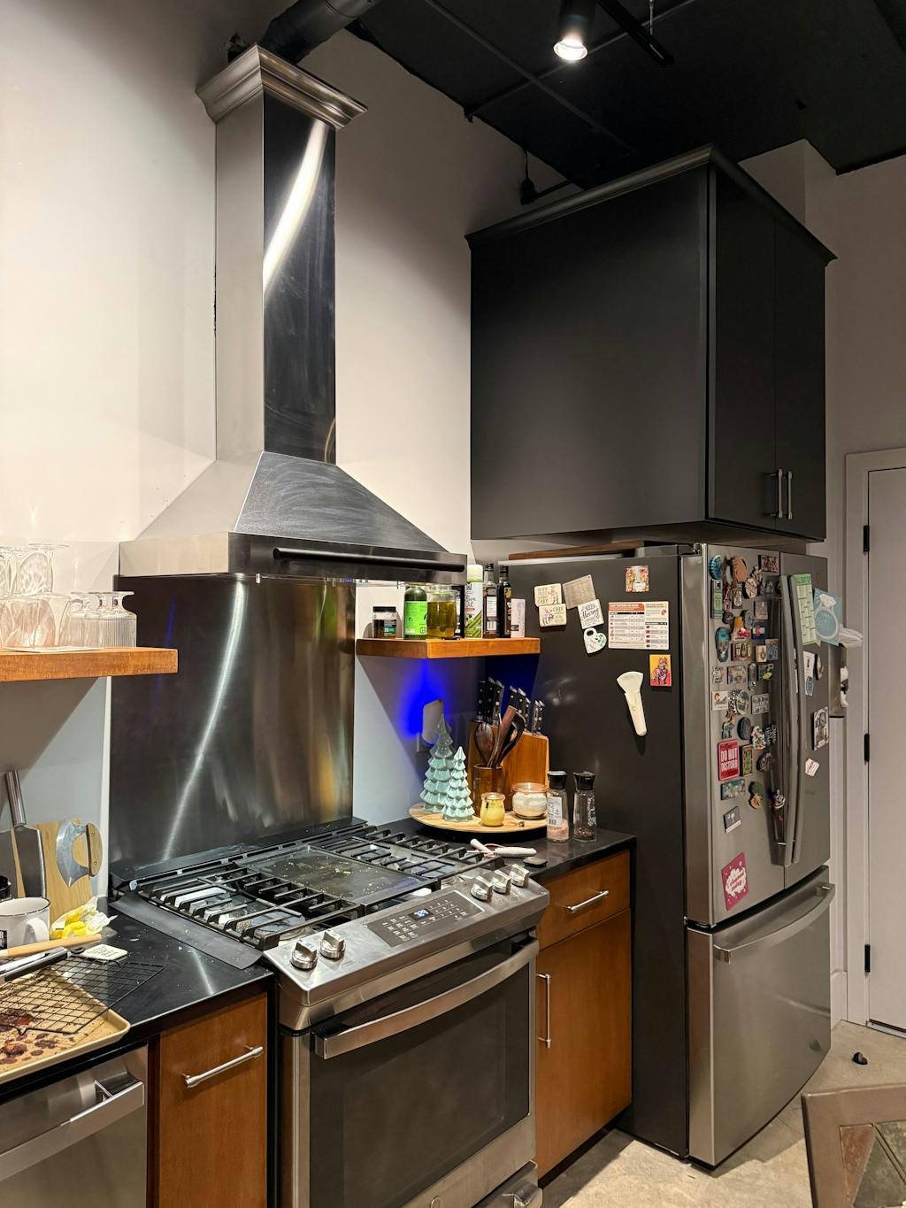 - Seamlessly integrated inside the range hood’s crown molding, allowing for a less cluttered kitchen area